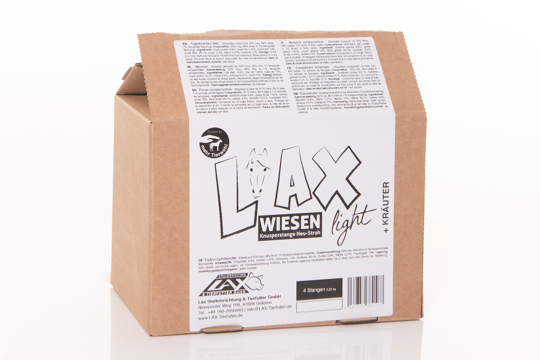 Unsere Lax Wiesen Knusperstange light mit Heu, Stroh und Kräutern ist ein hochwertiges Ergänzungsfuttermittel ohne Haferanteil aus heimischer Produktion. Durch die ausgesuchten natürlichen Zutaten und den hohen Anteil an kalorienarmem Stroh ist unser gesunder Raufutter-Snack die ideale Belohnung für dein leichtfuttriges Pferd – ob als Snack nach dem Reiten, als Ergänzung zum täglichen Heu oder einfach so zum ausgiebigen Knabbern in der Box.