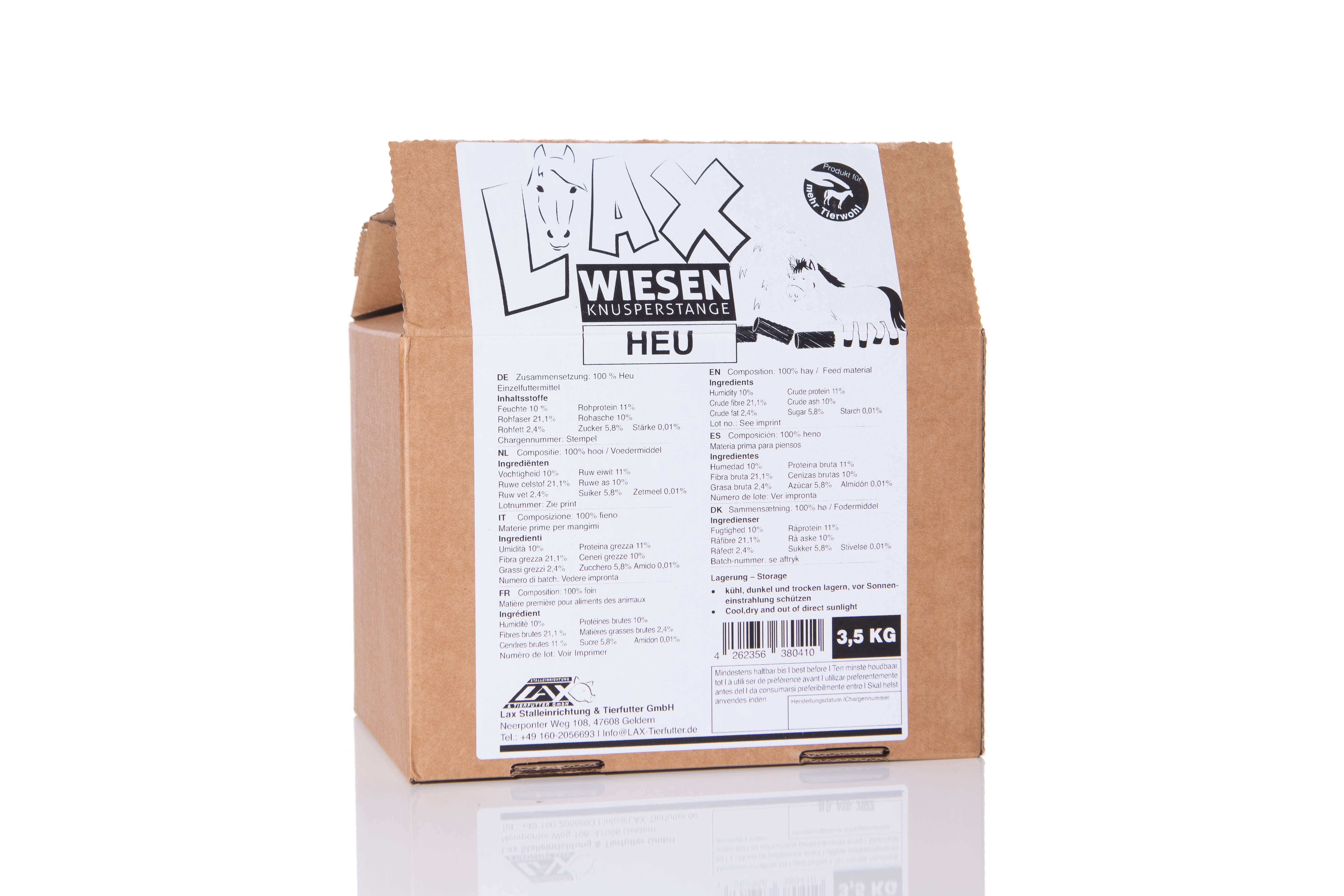 Unsere Lax Wiesenprodukte, der gesunde Snack für Pferde, kombinieren natürliche Zutaten mit einzigartigem Geschmack & sorgfältiger Verarbeitung und bieten somit die besten Voraussetzungen für ein hochwertiges Futtermittel. Unsere leckeren Knusperstangen besitzen beste Eigenschaften und verwöhnen Pferde mit wichtigen Nährstoffen. Das Einzelfuttermittel hat einen geringen Zuckergehalt und erweist sich als ideale Ergänzung für eine ausgewogene Ernährung Ihres Tieres. Das Pferdefutter wird dabei aus Luzerne & Wiesenheu aus kontrolliertem Anbau hergestellt und ist getreide- & melassefrei. Frisch von der Wiese werden die Zutaten in unserem eigenen Betrieb direkt von uns weiterverarbeitet und in eine längliche runde Form gepresst. Bei der Herstellung unserer Briketts achten wir stets auf eine schonende Pressung, sodass keine Hohlräume oder weiche Konsistenz entsteht. Der gesunde Raufutter Snack ist daher sehr ausgiebig und sorgt für einen langanhaltenden Knabberspaß.